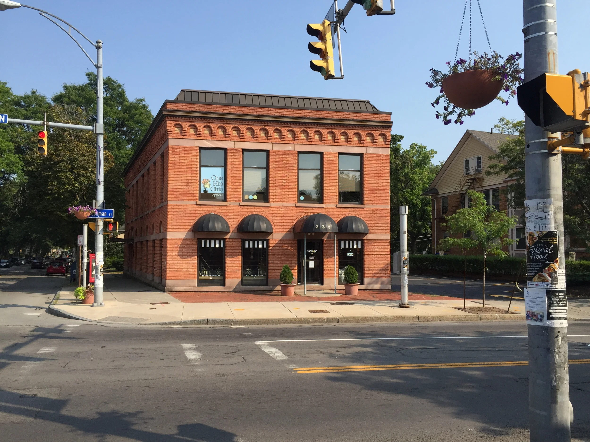 Baker Street Bakery, Chester Cab Pizza, Dragonfly Tavern, Somertons Public House, Wine Sense, Pour CoffeeParlor, Sinbads, Nathan's Soup, CVS Pharmacy, Marty's Meats, Esan Thai, Dorado, Furoshiki, Jines, Magpie, Blu Wolf Bistro, Seaver's Candies, UPS, Bank of America, Park Avenue Pub, 711, Abbots Frozen Custard, Cobbs Hill Park, Sweet Sammie Janes, Frog Pond, Speedy's Dry Cleaner